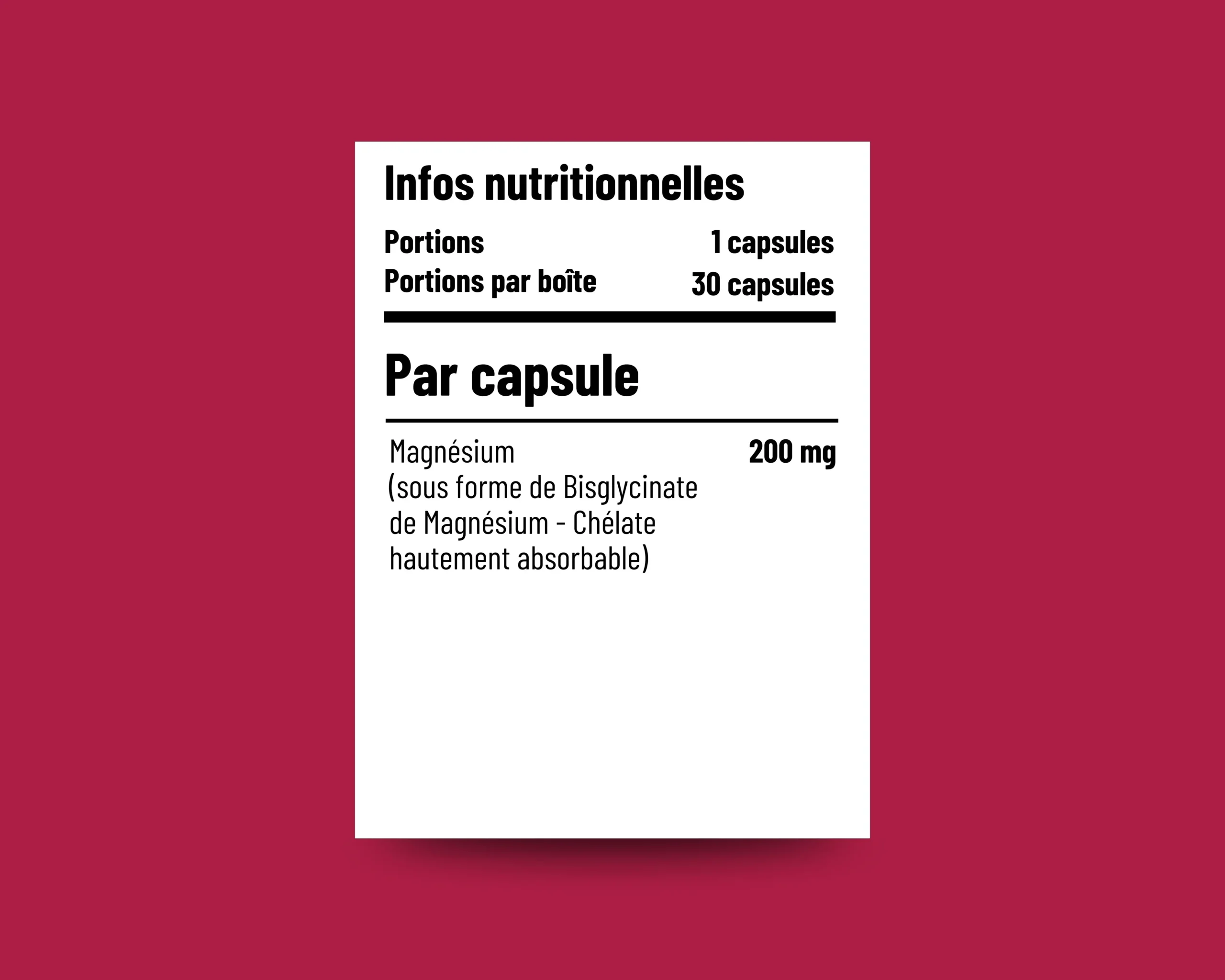 Notre formule utilise le Bisglycinate de Magnésium, une forme supérieure reconnue pour sa biodisponibilité exceptionnelle et sa douceur pour le système digestif, évitant les désagréments des magnésiums classiques. Il agit efficacement pour détendre les muscles, calmer le système nerveux et favoriser un sommeil de qualité.
